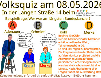 Wir bieten noch einmal, vorrausichtlich erst im Herbst wieder, an den berühmten, kurzweiligen und humorvollen Quizabend. Es...