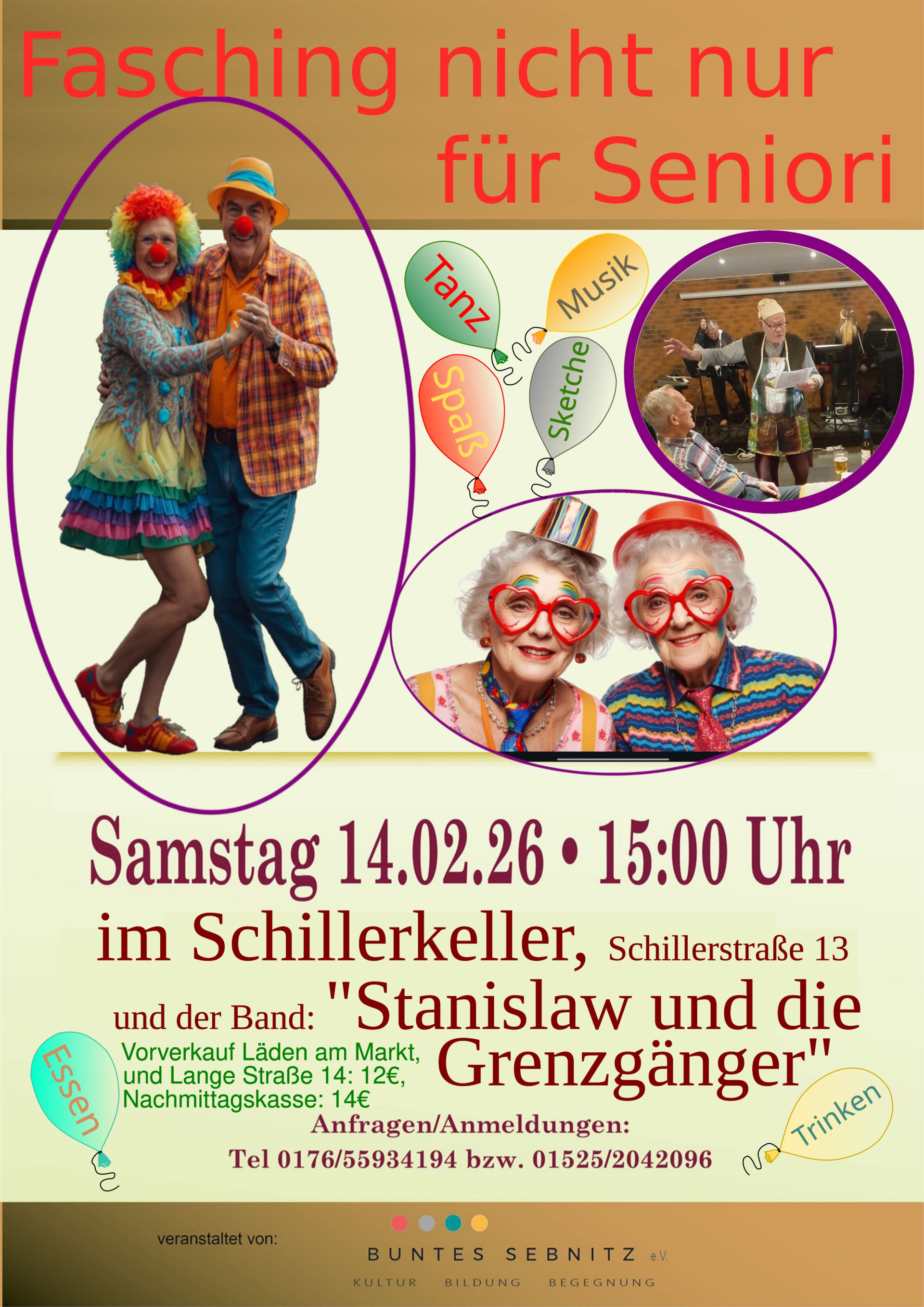 Zur Musik spielt auf die Band "Stanislaw und die Grenzgänger". Zusätzlich wir ein Begleitprogramm mit Witzen und Sketchen angeboten.