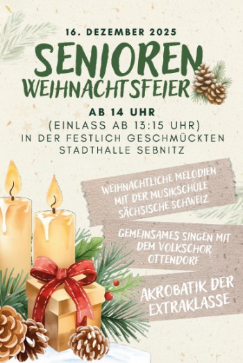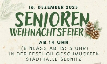 Die Stadt Sebnitz lädt alle Seniorinnen und Senioren herzlich zur diesjährigen Seniorenweihnachtsfeier am Dienstag, den 16. Dezember 2025, in die weihnachtlich geschmückte Stadthalle ein.