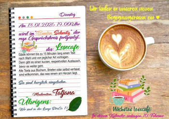 Die Tage sind kurz, die Nächte lang, warum sich dann nicht geistig fordern. Es gibt die Möglichkeit dazu an diesem Abend, Gäste können bis zu 15 Minuten lang einen Text nach Wahl und von jeglicher Art vortragen. Dann gibt es einen kurzen, respektvollen Austausch, bevor es weiter geht. Alle Texte aus Büchern, Briefen oder selbst verfasst, sind willkommen, das was einem am Herzen liegt. Die Moderatorin ist Tatjana Schwarzbach.